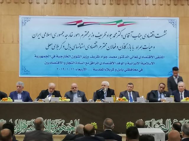 وقال ظريف في كلمة له خلال ملتقى اقتصادي عُقد في القنصلية الإيرانية بكربلاء إن "توجه الإيرانيين إلى زيارة الأربعين يكشف عن الوحدة بين العراقيين والإيرانيين".