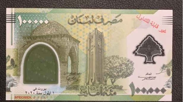 أعلن مصرف لبنان اليوم الخميس، في بيان أنه سيضع في التداول اعتبارا من تاريخ 7 ديسمبر 2020 الجاري، ورقة نقدية جديدة من فئة المئة ألف ليرة.