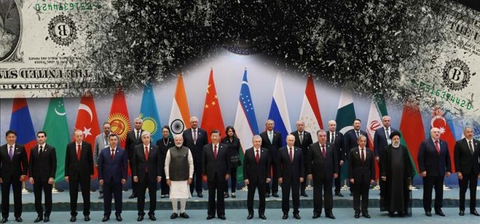 إن دول هذه المنظمة تسعى للتكامل فيما بينها على الصعيد الاقتصادي، لكي تخرق الحصار المفروض عليها أميركياً، ولا سيما إيران وروسيا والصين، لجذب الاستثمارات الآسيوية وتوريد منتجات الطاقة. ووفقاً لبيانات “تقرير تنمية التجارة لمنظمة شنغهاي للتعاون لـ20 عاماً”، زادت القيمة التجارية الإجمالية للدول الأعضاء في منظمة شنغهاي للتعاون من 667.09 مليار دولار أمريكي عام 2001 إلى 6.06 تريليونات دولار أمريكي عام 2020، وزادت حصتها من إجمالي التجارة العالمية من 5.4% عام 2020 إلى 17.5% عام 2021. وبلغ الناتج المحلي الإجمالي للدول الأعضاء في منظمة شنغهاي للتعاون نحو 23.3 تريليون دولار أمريكي، وهو ما يمثل نحو ربع الناتج المحلي الإجمالي العالمي. وتعمل الصين على تعزيز تنمية التجارة مع الدول الأعضاء الأخرى في منظمة شنغهاي للتعاون. وأصبحت أكبر شريك تجاري لأوزبكستان وباكستان، وثاني أكبر شريك تجاري لروسيا والهند، وثالث أكبر شريك تجاري لكازاخستان وطاجيكستان، ورابع أكبر شريك تجاري لقيرغيزستان.