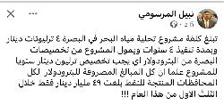 اقتصادي يكشف تفاصيل مشروع تحلية المياه في البصرة.. كم بلغت كلفته؟