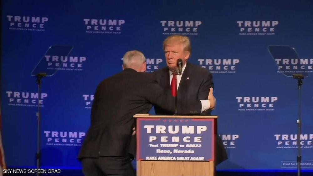 وخلال نقل مباشر للمؤتمر الانتخابي المنعقد في رينو، أطل ترامب على مناصريه من على المنصة، ولكن قبل البدء في إلقاء كلمته عمد حراسه إلى إجلائه بعد تهديد من أحد الحاضرين.