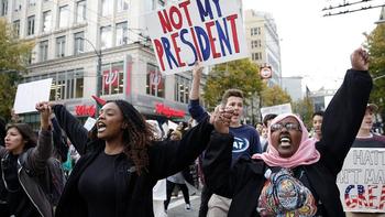 وخرج عشرات الآلاف في مسيرات في مدن من نيويورك إلى لوس أنجلوس في تجمعات معظمها سلمية منذ فوز ترامب المفاجئ، الثلاثاء الماضي، على المرشحة الديمقراطية هيلاري كلينتون.