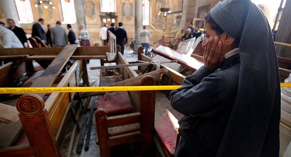 وظهرت ملامح الحزن والغضب على وجوه الأهالي، الواقفين أمام باب المستشفى بانتظار استلام جثامين أقاربهم. ووقع انفجار، صباح اليوم الأحد، داخل مبنى الكاتدرائية المرقسية بحي العباسية في وسط القاهرة، وأسفر الحادث، بحسب آخر إحصاء صادر عن وزارة الصحة المصرية، عن مقتل 25 شخصاً وإصابة 31 آخرين.