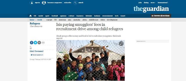 الغارديان: داعش الارهابي يدفع أموال لمهربين لجلب أطفال وشباب لاجئين وتجنيدهم