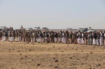 واكدت قبائل ارحب في لقاء قبلي حاشد التوجه الى ساحات الوغى للرد على مجازر العدوان البربري الوحشي والذي كان اخرها مجزرة استهداف منزل العزاء النسائي لأل النكعي بمنطقة شراع.