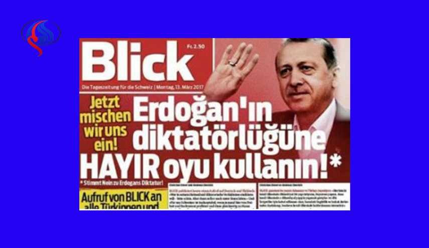 انضمّت صحيفة محلية سويسرية لحملة المقاطعة التي تقودها بعض الدول الأوروبية ضد الرئيس التركي رجب طيب أردوغان منذ الإعلان عن نيته في تعديل الدستور في البلاد خلال الأشهر الماضية.