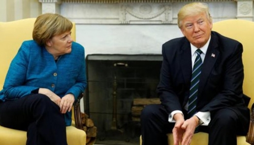 تجدر الاشارة إلى أن ترامب كان قد التقى ميركل في واشنطن في الـ17 من اذار الماضي، وسجلت عدسات الصحافة وكاميراتها امتناعه عن مصافحة ضيفته رغم أنها مدت يدها لها ودنت منه لهذا الغرض.