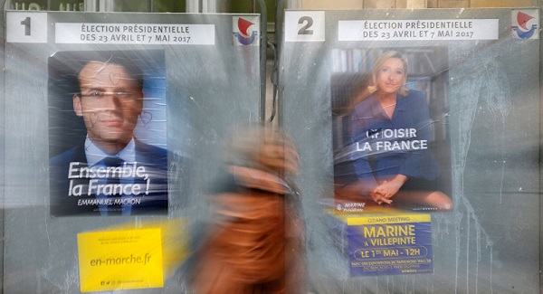 ويتنافس مرشحان على الرئاسة وهما إمانويل ماكرون ، وزير الاقتصاد السابق في عهد حكومة فرنسوا هولاند، وزعيم حركة "إلى الأمام" ومارين لوبن وهي زعيمة حزب الجبهة الوطنية اليميني المتطرف.
