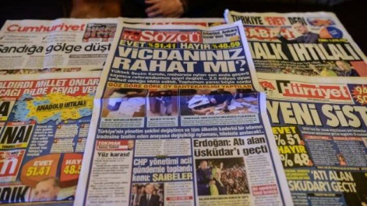 وتحتل تركيا المرتبة 155 من بين 180 بلدا على مؤشر منظمة "مراسلون بلا حدود" لحرية الصحافة العالمية 2017.