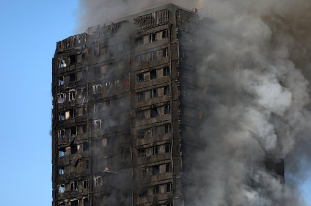 وشوهدت قطع كبيرة من الركام تتساقط من برج غرينفيل تاور، المبنى الذي يعود بناؤه لسبعينات القرن الماضي، في المنطقة التي تسكنها طبقة عمالية، والواقعة شمال حي كنسينغتون، على مسافة قريبة من حي نوتينغ هيل الراقي.