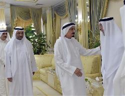 ونشرت الوكالة مجموعة من الصور للشيخ خليفة، وهو أيضا حاكم أبوظبي، وهو يستقبل حكام الإمارات في حفل استقبال تقليدي للتهنئة بالعيد.