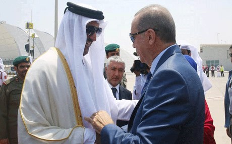 وأجرى أردوغان، اليوم، مبحاثات مع أمير قطر الشيخ تميم بن حمد آل ثاني فور وصوله.واستمر اللقاء بين الزعيمين ساعتين ونصف الساعة في الديوان الأميري، أعقبه مأدبة طعام على شرف الرئيس التركي.