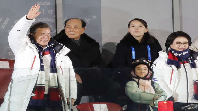 التقى رئيس كوريا الجنوبية مون جيه-إن بشكل مقتضب ولأول مرة بالرئيس الشرفي لكوريا الشمالية كيم يونغ-نام، وكيم يو جونغ، الشقيقة الصغرى للزعيم الشمالي كيم جونغ أون.