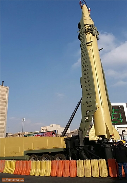 وجرى عرض صاروخ قدر الباليستي للقوة الجوفضائية لحرس الثورة الاسلامية الذي يصل مداه الى الفي كيلومتر خلال مسيرات ذكرى انتصار الثورة الاسلامية .