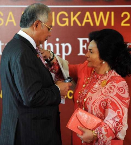 وتقول الشرطة إن بعض هذه الحقائب تعود لزوجة نجيب، روسمة منصور. وانتتقدت منصور في الصحافة المحلية كثيرا بسبب ما وصفه صحفيون بشغفها برحلات التسوق الفاخرة وامتلاكها لمجموعة واسعة من حقائب اليد الباهظة الثمن.