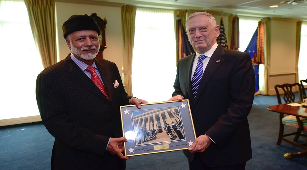 ناقش وزير الدفاع الأمريكي «جيمس ماتيس» مع وزير الدولة العماني للشؤون الخارجية «يوسف بن علوي» الحرب في اليمن وحرية الملاحة وجهود مكافحة الإرهاب.