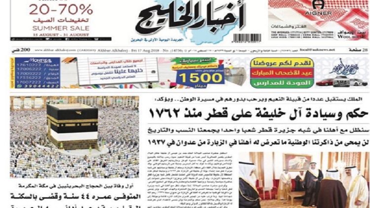 وقالت صحيفة أخبار الخليج البحرينية في عناوينها الفرعية على الصفحة الأولى، "إننا سنظل مع أهلنا في شبه جزيرة قطر شعبا واحدا يجمعنا النسب والتاريخ"، مضيفة أنه "لن يمحى من ذاكرتنا الوطنية ما تعرض له أهلنا في الزبارة من عدوان سنة 1937".
