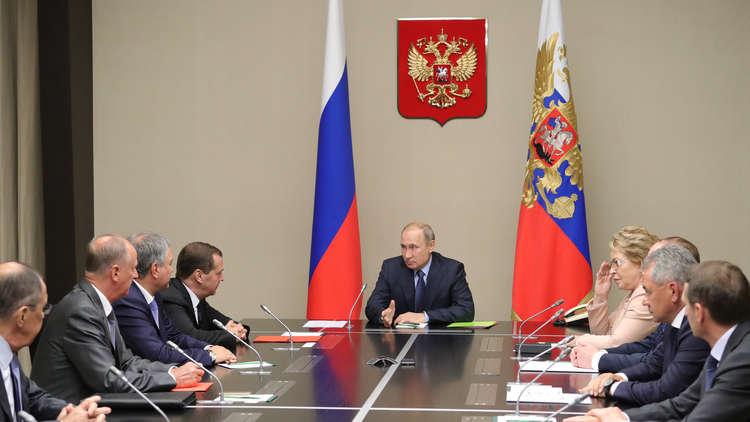 بحث الرئيس الروسي فلاديمير بوتين مع الأعضاء الدائمين في مجلس الأمن القومي المسائل المتعلقة بتعزيز أمن العسكريين الروس في سوريا إثر إسقاط الطائرة الروسية "إيل-20" هناك.