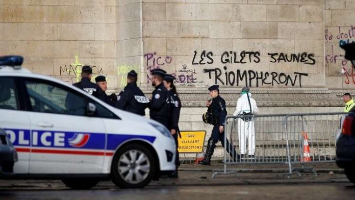 وطالب المحتجون بالعاصمة الفرنسية باريس الرئيس إيمانويل ماكرون بالرحيل، ورفعوا شعارات مناهضة له وذلك فور وصوله لتفقد قوات الأمن غداة مظاهرات “السترات الصفراء” التي رافقتها أعمال عنف وشغب يوم السبت.