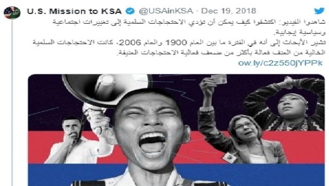 أثارت تغريدة نشرت على حساب السفارة الأمريكية لدى الرياض روّجت لمحاسن الاحتجاجات، ردود فعل غاضبة من النشطاء السعوديين وصلت حد أن أحدهم توعد بقطع أي إصبع يمد إلى المملكة بسوء.