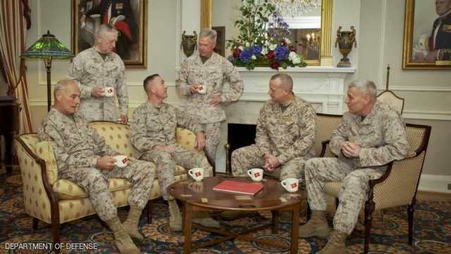 ونشرت بيزنس إنسايدر الصورة بالأعلى، التي التقطت عام 2013، تجمع ستة من جنرالات سلاح مشاة البحرية، وجميعهم غادروا إدارة ترامب، عدا الجنرال جي أموس القائد الحالي للمارينز.