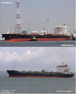 ونشرت الوكالة صورا للناقلتين، مضيفة أن إحدى الناقلتين (FRONT ALTAIR) تتبع جزر مارشال والناقلة الأخرى (Kokuka Courageous) ترفع علم باناما.