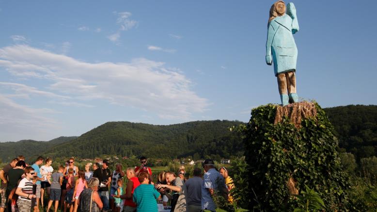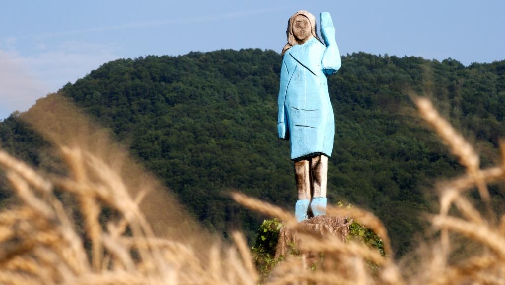 جرى الكشف عن تمثال خشبي ساخر بالحجم الطبيعي لسيدة الولايات المتحدة الأولى ميلانيا ترامب قرب مسقط رأسها سيفنيكا بجنوب شرق سلوفينيا، على يد النحات المحلي أليس زوبيفتس بتكليف من الفنان الأميركي المقيم في برلين براد داوني.