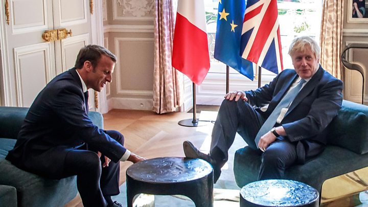 ربما يكون رئيس الوزراء البريطاني بوريس جونسون احتاج إلى شهر ليشرع في أولى رحلاته الخارجية، لكنه سريعا ما شعر وكأنه في "بيته" لدى زيارته قصر الإليزيه، مقر الرئيس الفرنسي إيمانويل ماكرون، الخميس، فوضع قدمه على طاولة كانت أمامه.