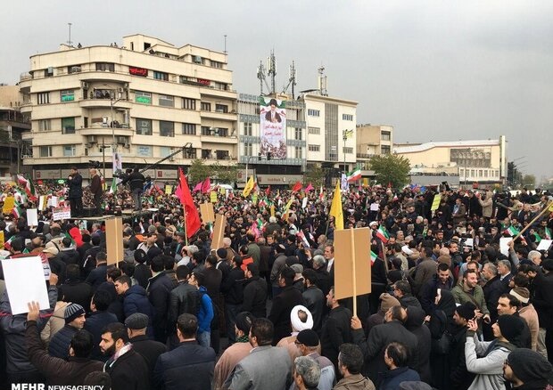 وأفادت وكالة مهر للأنباء، أن المشاركين في المسيرات الحاشدة التي خرجت في العاصمة الإيرانية طهران لدعم الحكومة أصدروا بيانا طالبوا فيه القضاء أن ينزل عقوبات مشددة بحق من سعوا للإخلال بالنظام العام وتسببوا في انعدام العام.
