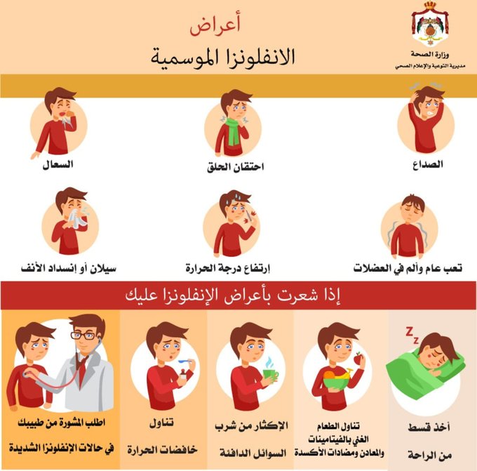 وحثت المسؤولة الأردنية على اتباع الطرق الوقائية للحماية من الإنفلونزا ومنها غسل يدي المصابين وعدم استخدام الأغراض الشخصية لهم ومتابعة النشرات التوعوية حول الوقاية وعلاج المرض.