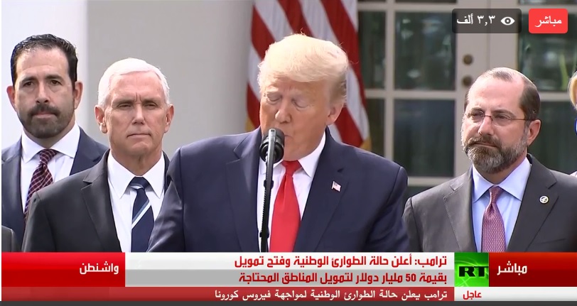 أعلن الرئيس الأمريكي دونالد ترامب اليوم الجمعة حالة الطوارئ في الولايات المتحدة، وذلك في إطار مواجهة تفشي فيروس كورونا المستجد في البلاد.