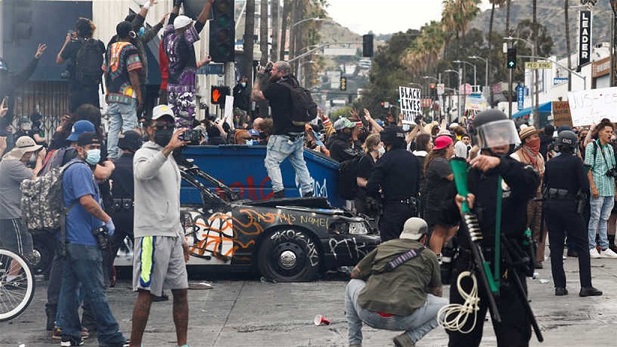 وأشار موقع صوت أميركا إلى أنه على مدار الأيام الماضية تحول الاحتجاج السلمي في البداية إلى نهب وإحراق وعنف في مدينتي مينيابوليس وسانت بول بداية، لتنتقل الفوضى إلى مدن أخرى في الولايات المتحدة.