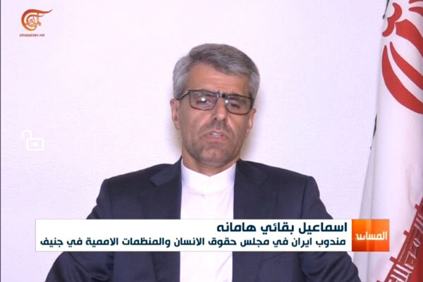 أكد مندوب إيران في مجلس حقوق الإنسان والمنظمات الأمميّة في جنيف، السفير إسماعيل بقائي هامانة، أنّ اجتماع امس الخميس في مجلس حقوق الإنسان "كان هاماً بخصوص قضيّة الشهيد قاسم سليماني".