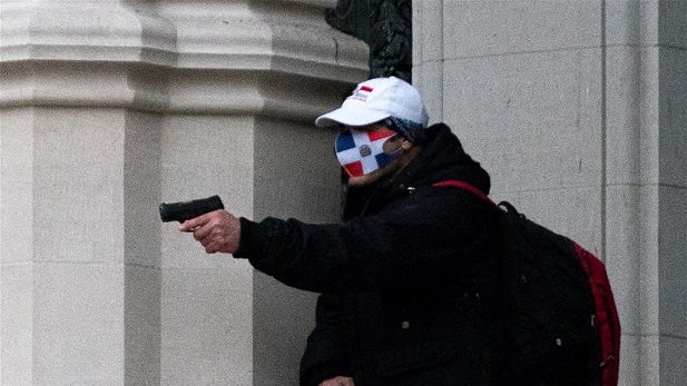 وأظهرت صور المسلح يرتدي معطفا شتويا أسود وقبعة بيسبول بيضاء وكمامة مزينة بعلم جمهورية الدومينيكان ويشهر مسدسا في كل يد كما كان يحمل حقيبة ظهر كبيرة مربوطة على كتفيه.