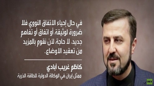 أعلن سفير إيران لدى الوكالة الدولية للطاقة الذرية /كاظم غريب آبادي/ رفض بلاده مقترح الوكالة بالتوصل لاتفاق جديد بشأن البرنامج النووي بعد وصول جو بايدن للرئاسة في الولايات المتحدة.