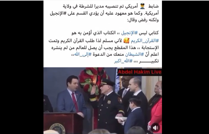 بالفديو ... ضابط شرطة امريكي يؤدي القسم بالقران لكونه مسلم