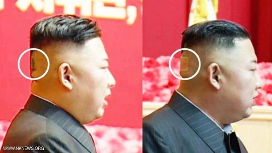 وقال الموقع، إن البقعة الخضراء أو الضمادة على الجانب الأيمن الخلفي من رأس كيم، لا تزال غير معروفة الأسباب، ويصعب تشخيصها باستخدام الصور فقط.