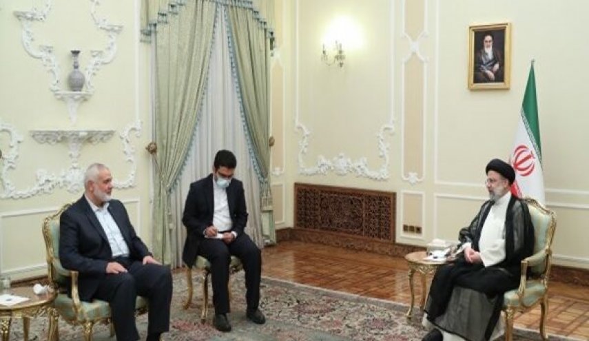بدوره قال "اسماعيل هنية" رئيس المكتب السياسي لحركة حماس في اللقاء انه يحمل رسالة تهنئة وتحيات الشعب الفلسطيني المقاوم والمظلوم في كافة انحاء فلسطين والعالم لآية الله رئيسي وقال ان الجمهورية الاسلامية في ايران والامام الخميني قدس سره اولوا اهتمامهم الجاد بقضية فلسطين منذ بداية انتصار الثورة الإسلامية .