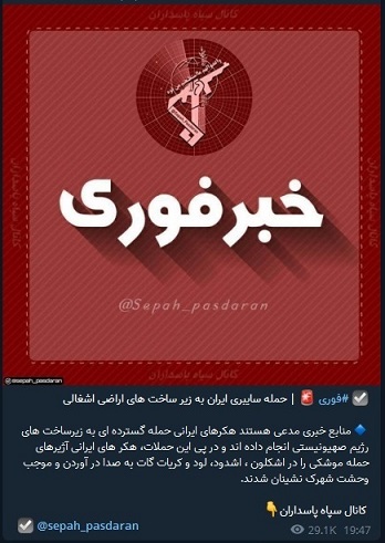 قالت قناة مقربة من الحرس الثوري إن قراصنة إلكترونيين إيرانيين تمكنوا من التسلل إلى أنظمة الطوارئ الإسرائيلية ما تسبب بإطلاق صافرات الإنذار في عدد من المستوطنات.