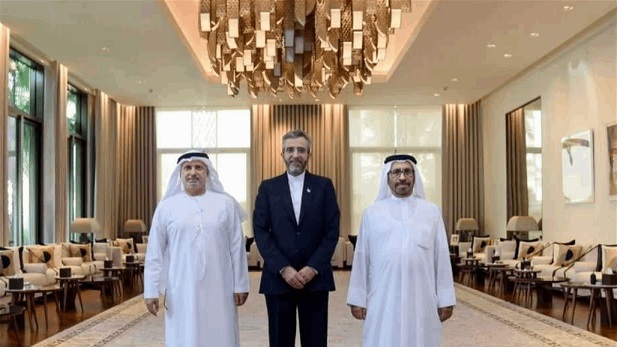 وكشف باقري في تغريدة على تويتر أنه التقى في دبي بالمستشار قرقاش ووزير الدولة، خليفة المرر، واصفا اللقاء بأنه كان "وديا".