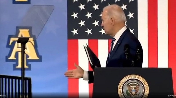 تداول نشطاء على مواقع التواصل الاجتماعي، مقاطع فيديو للحظة قيام الرئيس الأمريكي، جو بايدن، بتصرف غريب عقب الانتهاء من خطاب ألقاه، أمس الخميس.