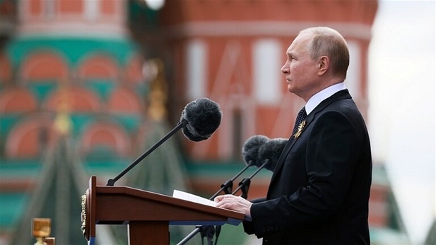وتحدث بوتين خلال العرض العسكري السنوي بمناسبة يوم النصر في الساحة الحمراء في العاصمة موسكو إحياء لذكرى انتصار الاتحاد السوفياتي على ألمانيا النازية في الحرب العالمية الثانية.