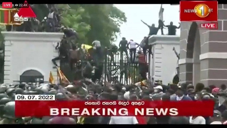 قال مصدر عسكري رفيع إن الرئيس السريلانكي المحاصر، غوتابايا راجاباكسا، فر من مقر إقامته الرسمي في العاصمة، قبل أن تظهر لقطات محتجين يطالبون باستقالته وهم يقتحمون المجمع الرئاسي.