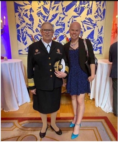 وتفاعل مستخدمو "تويتر" بغضب مع صورة لراشيل ليفين أول أدميرال أمريكي متحولة جنسيا مع الناشط المثلي سام برينتون، بمناسبة اليوم الوطني الفرنسي في السفارة الفرنسية لدى واشنطن.