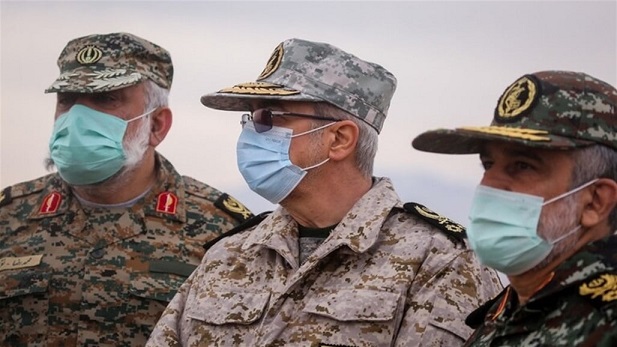 وقال رئيس الأركان اللواء محمد باقري في بيان: "تعرف القوات الأمريكية أنه في حال وجود أي نيّة أو أطماع لديهم تجاه مصالح إيران في الخليج الفارسي والسواحل والجزر ومنصات النفط الايرانية، فإنهم سيواجهون القوات البطلة للحرس الثوري الإيراني".