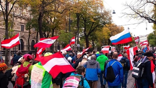 نظم مئات المواطنين في العاصمة النمساوية فيينا، مسيرة احتجاجية تطالب السلطات بإعادة النظر في العقوبات المفروضة ضد روسيا، والحفاظ على حياد البلاد الكامل.