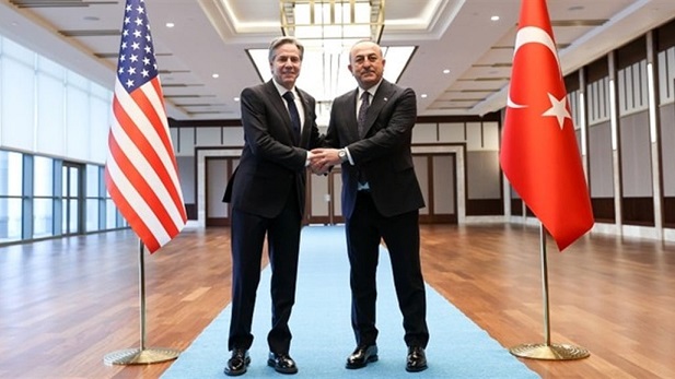 وقال بلينكن، خلال مؤتمر صحفي في أنقرة، مع نظيره التركي، مولود تشاوش أوغلو، إن "تركيا والولايات المتحدة تقفان جنبا إلى جنب في القضايا الأمنية المشتركة، ونتفهم مخاوف تركيا على حدودها الجنوبية ونعمل معا بشأن هذا الأمر".