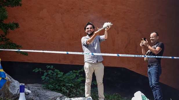 وسلوان موميكا، مهاجر من العراق يبلغ من العمر 37 عاما، مزق صفحات من القرآن وأضرم النار فيه.