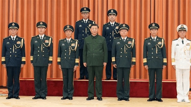 وقدم الرئيس شي تهانيه للضابطين، بالرتبة التي تعد الأعلى للعسكريين أثناء الخدمة الفعلية في الجيش الصيني، وفي وقت لاحق، التقط هو وقادة آخرون صورا جماعية معهما.