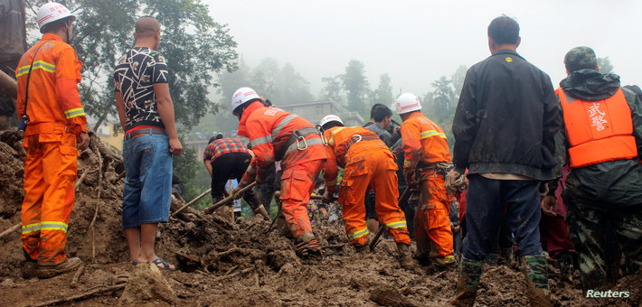 وبيّنت أن انهيارا طينيا وقع في الساعة 05:51 من صباح اليوم الاثنين في في منطقة تشنشيونغ بمقاطعة يوننان وألحق أضرارا بعدد قرى.